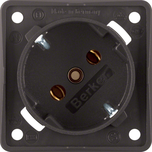 Steckdose SCHUKO 45°, mit Schraubklemmen, Integro Modul-Einsätze, braun m. Steckdose in Kompaktbauweise mit Schraubklemmen.