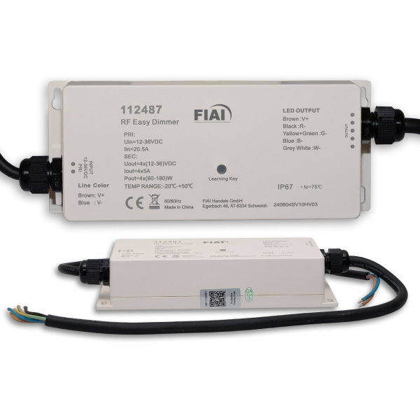 Funk PWM-Dimmer IP66: 4 Kanal, 12-36V 4x5A, 48V 4x2A. Robuste Steuerungskomponente für LED Lichtquellen im Innenbereich, geschützt vor Insekten und Strahlwasser
