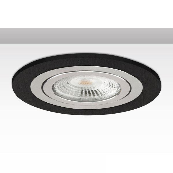 Einbaurahmen rund für LED Lichtquellen mit Lochausschnitt 80mm in schwarz + Alu gebürstet, passend für GU10/MR16 Spots