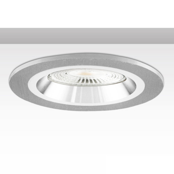 Einbaurahmen rund, Lochausschnitt 80mm, Alu gebürstet + weiß-silber, für GU10/MR16 Spots