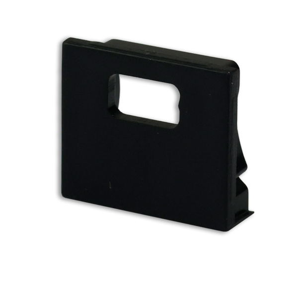 Schwarze Endkappe EC78B für Kühlprofil mit Kabeldurchführung. Zubehör für eine einfache und sichere Montage. 1 Stück pro Packung