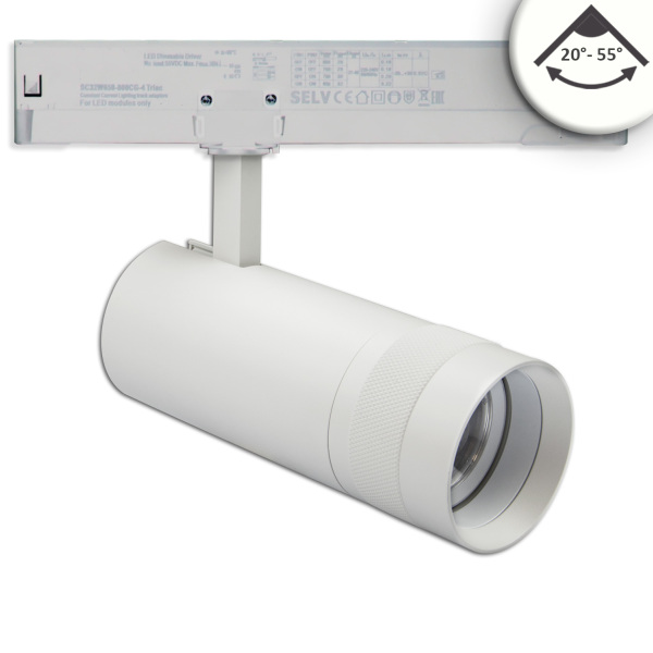 3-PH Schienen-Strahler fokussierbar, 24W, 20°-55°, weiß matt, 4000K, dimmbar