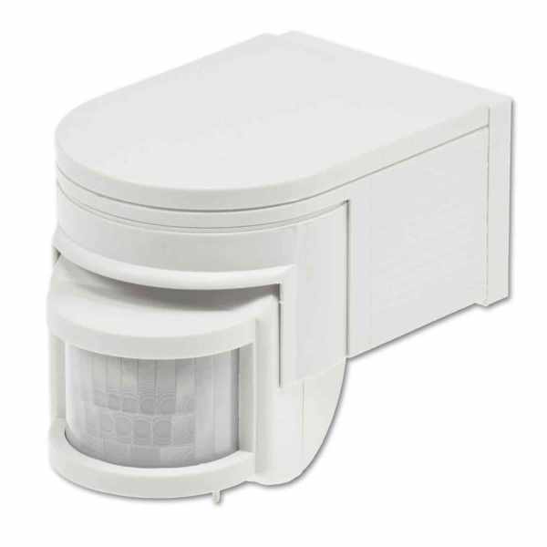 PIR Bewegungsmelder weiß, 230V, max. 4A, 180° max. 10m Detektionsradius, IP44, Aufputzmontage