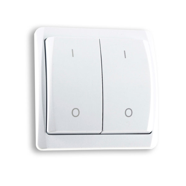 IR-PANEL CONTROL 2-fach Funk-Wandsender für Innenbereiche. Weiße Kunststoffgehäuse und inklusive A23 12V Batterie