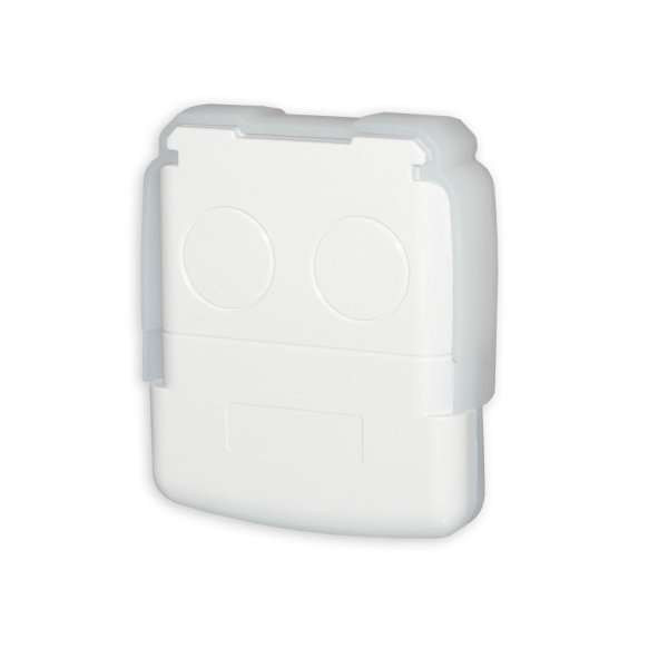 Besonderheiten: Weiße, abschließende Endkappe für Balkenaufnahme. Dazu passender Artikel Nr. 114293 Kabelmuffe