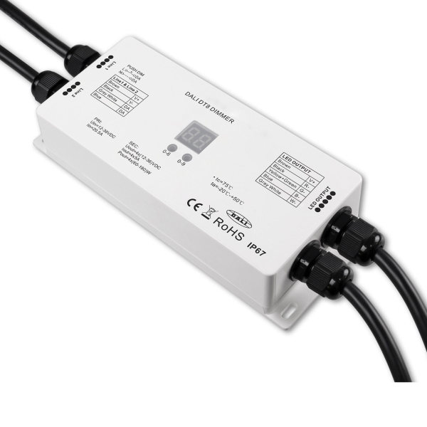 DALI DT8 1 Adresse RGB+W PWM-Dimmer IP67, 4 Kanal, 12-36V 4x5A, 48V 4x3A
