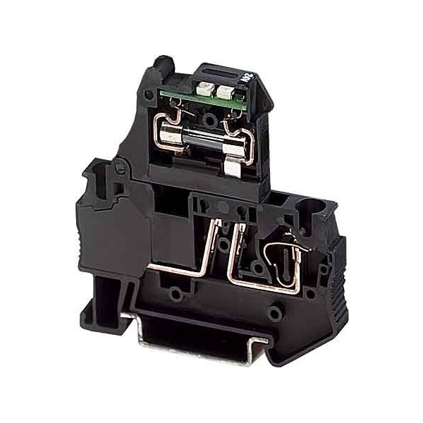 Hebelsicherungsklemme, Farbe schwarz, für 5 x 20 mm G-Sicherungseinsätze, mit LED für 24 V AC/DC