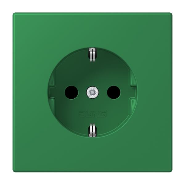 SCHUKO®-Steckdose, vert foncé mit Federklemmen für starre und unbehandelte flexible Leiter bis 2,5 mm2 Verbindungsklemmen nach DIN VDE 0620 Tragring, Krallen und Krallenschrauben sind über eine Erdungsschiene in die Schutzmaßnahme eingebunden. Material: Duroplast lackiert Maße (B x H): 70 x 70 mm